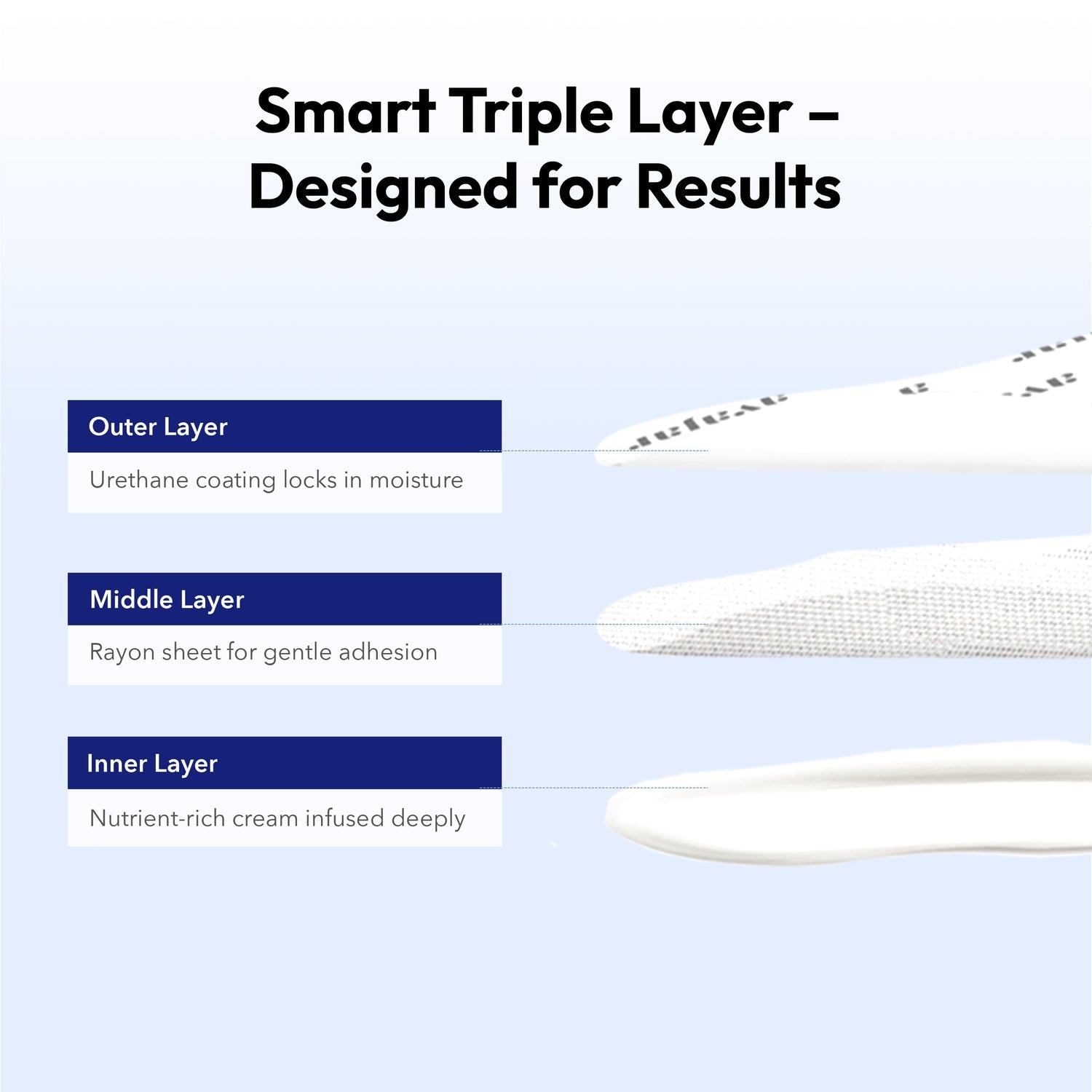 Soft hydrogel-style mask patches adhere comfortably to skin