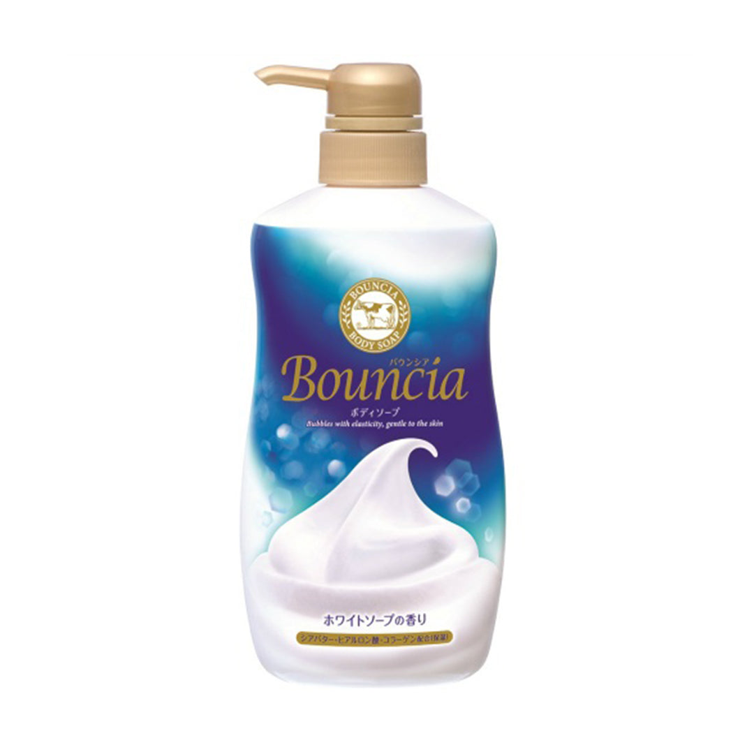 - COW BRAND Bouncia Body soap contains Hyaluronic Acid, Collagen, and Milk Butter.