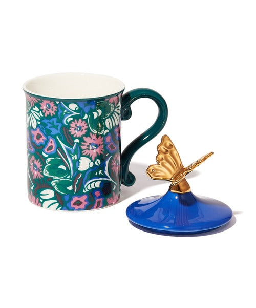 Francfranc × ANNA SUI Flower Mug with Lid, Blue 日本Francfranc × 安娜苏花朵带盖马克杯(蓝色)