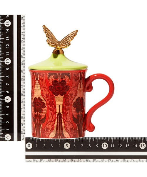 Francfranc × ANNA SUI Flower Mug with Lid, Red 日本Francfranc × 安娜苏花朵带盖马克杯(红色)