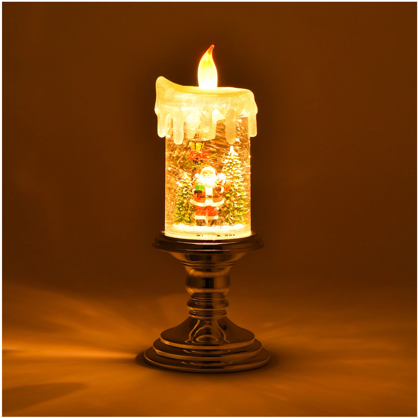 有一个微型圣诞老人,在圆顶的蜡烛中拿着一份礼物。当你打开开关时,已经堆积起来的银跛子就会飞起来。由于它具有自动旋转功能,优雅旋转的雪球将装饰您的房间。