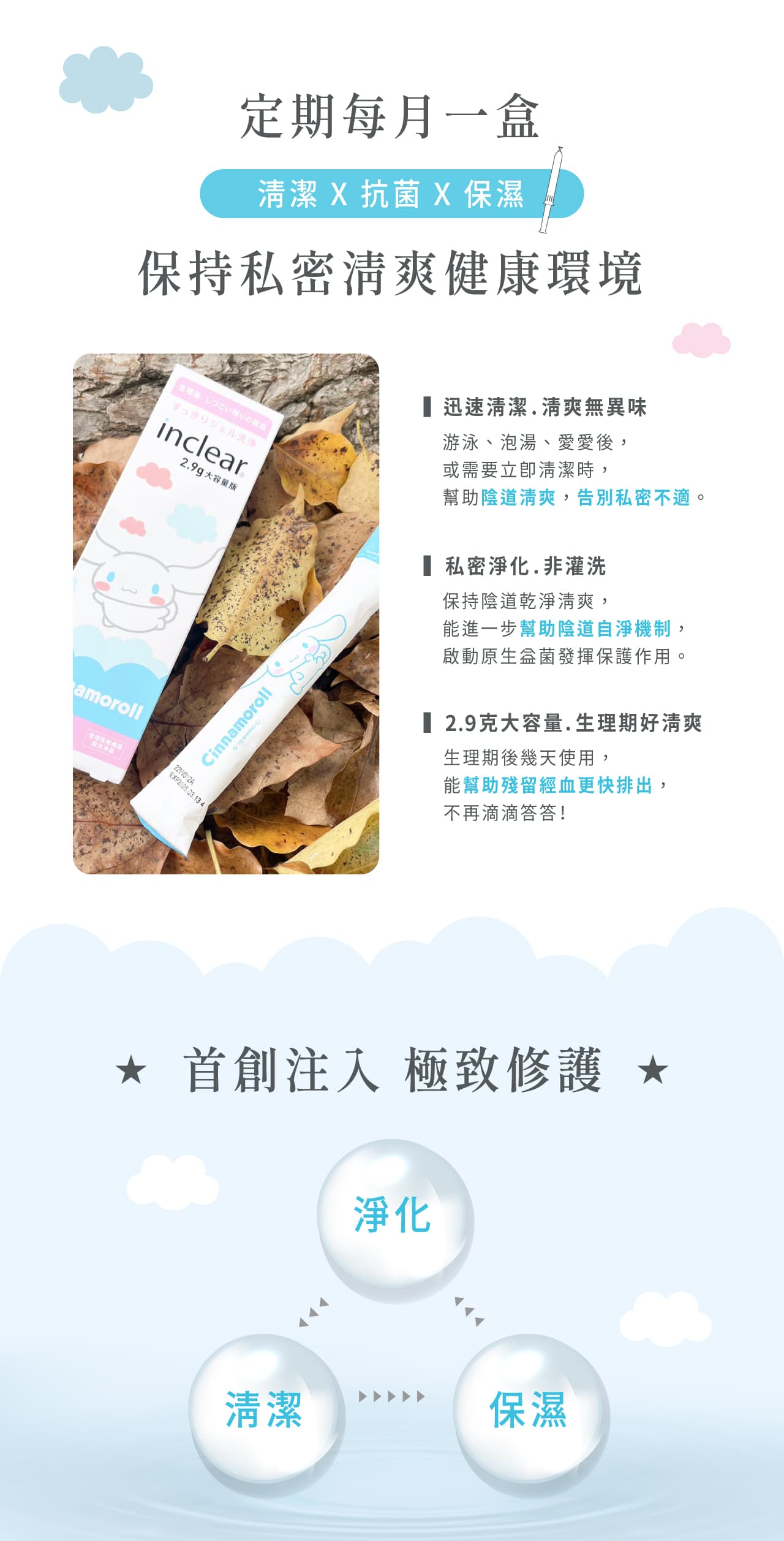 Inclear 2.9 Cinnamoroll Intimate Wash 2pcs/box 日本Inclear 玉桂狗联名私密净化凝胶凝胶 2.9g 2入装