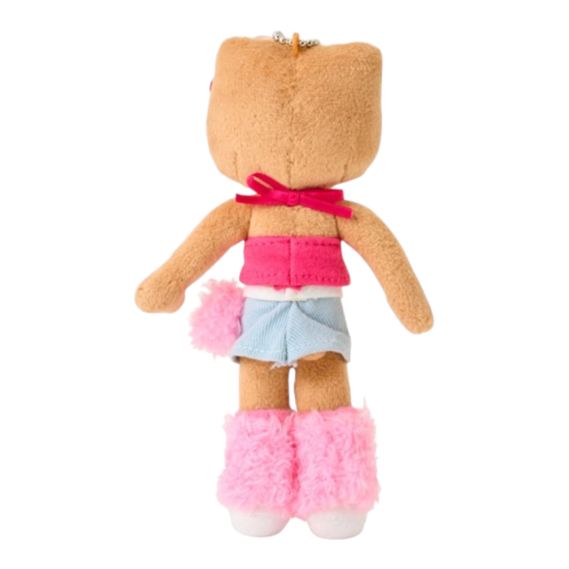 This special tan skin edition features Kitty dressed in a bold and fashionable retro 2000s look—hot pink halter top, denim mini skirt, fuzzy leg warmers, and a hibiscus flower hair accessory that completes the perfect girly-gal vibe.
