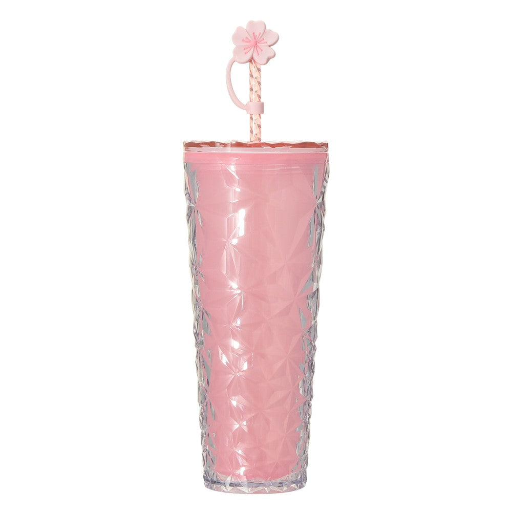 注入冷饮后,杯身颜色会变成更浓郁的粉色,如春日阳光下的樱花般柔美。表面立体纹理在光线下闪耀,搭配樱花造型吸管盖,颜值与实用兼具,适合日常冰饮使用。