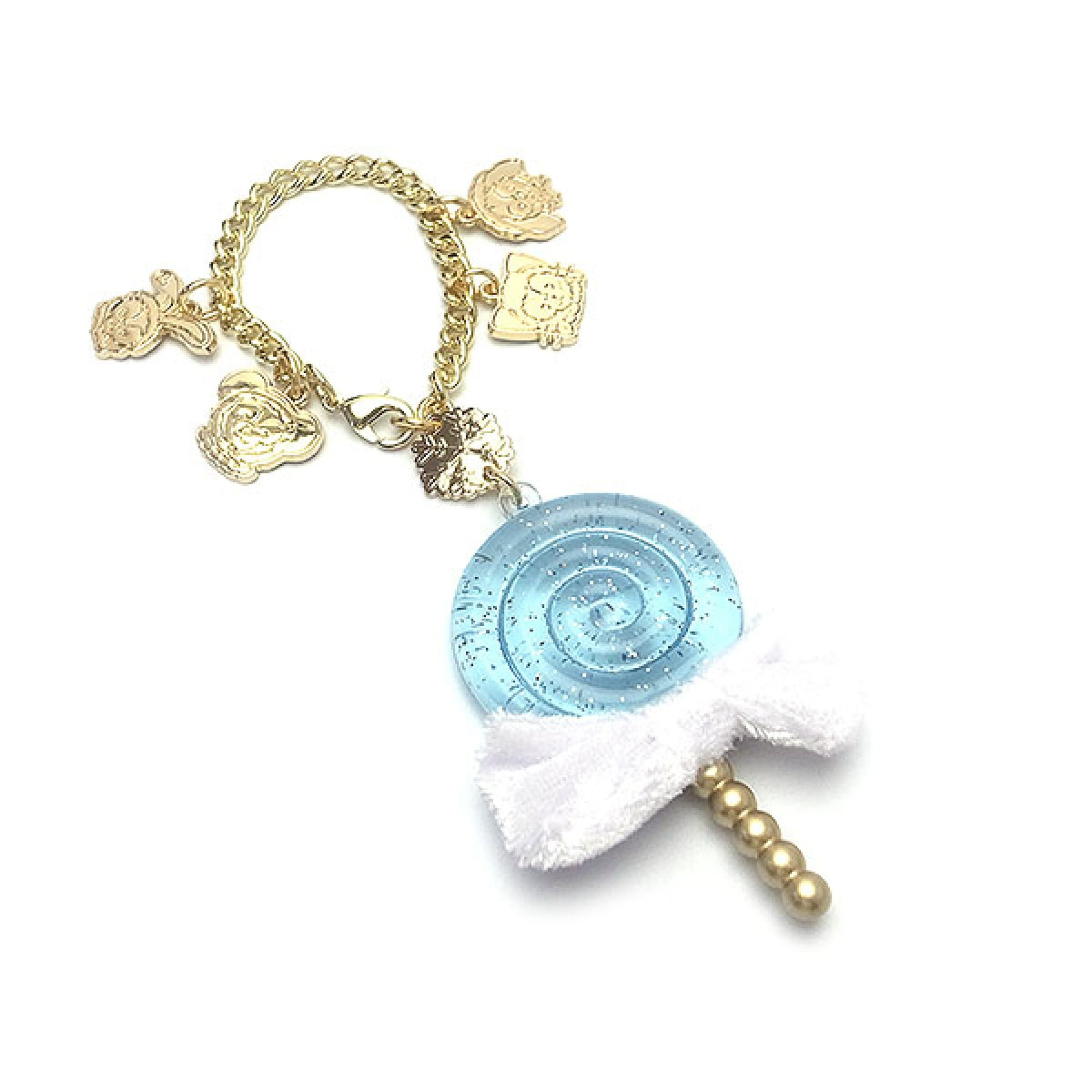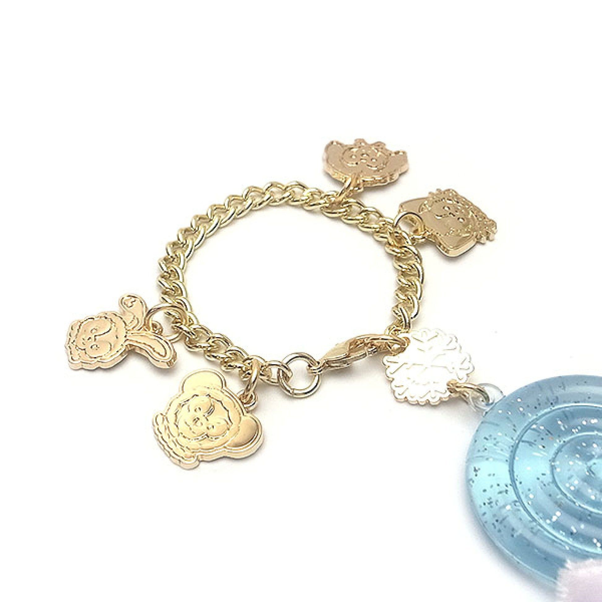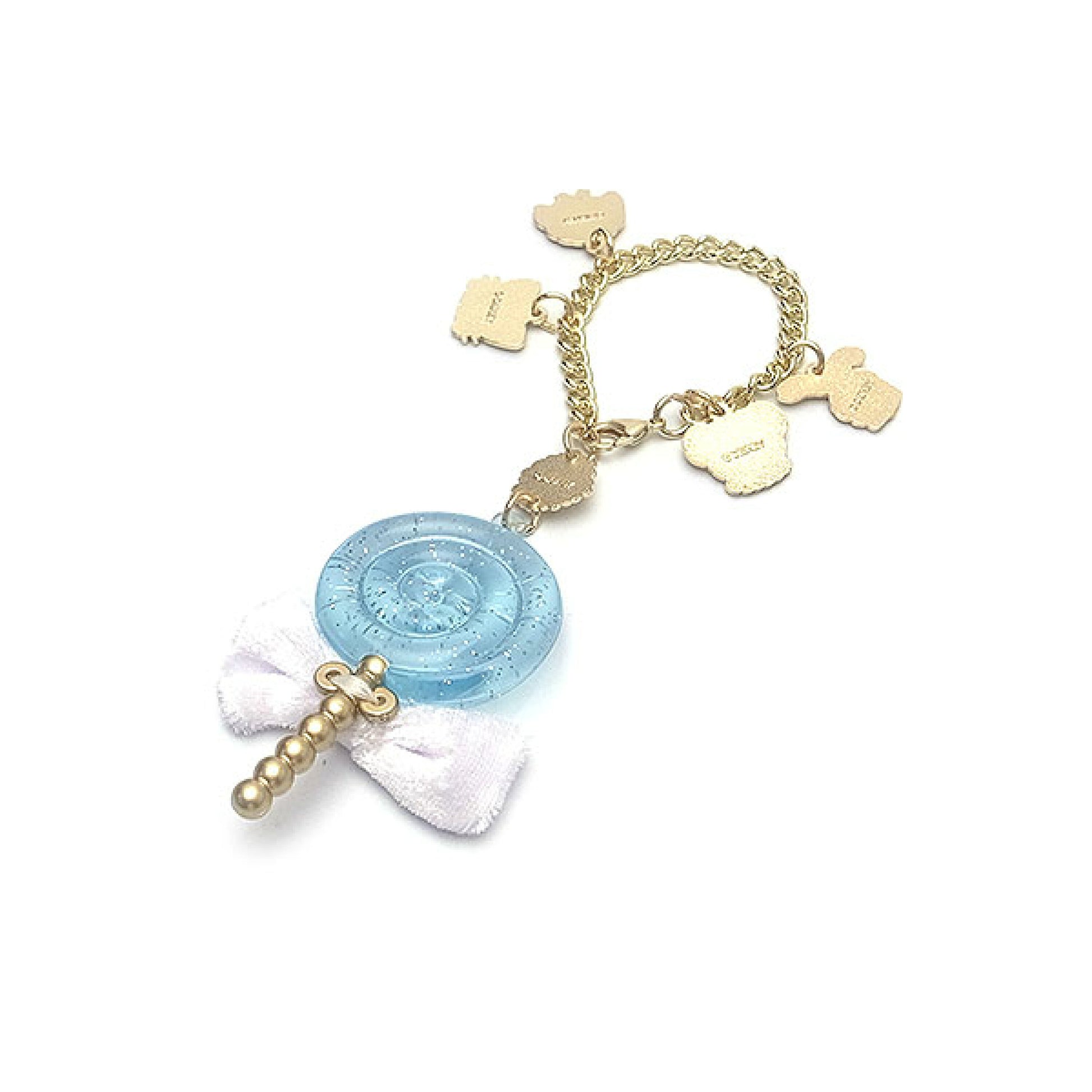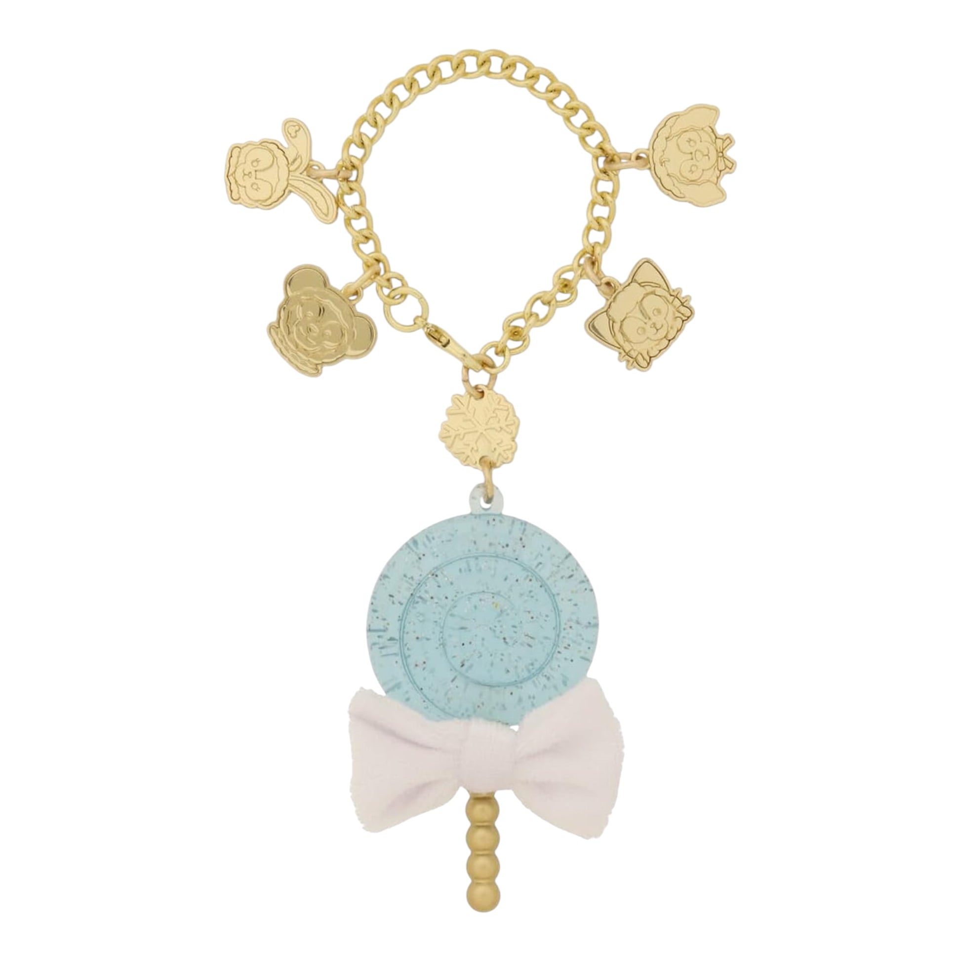 This adorable Duffy & Friends candy-shaped bag charm features winter pastel tones with a soft white bow and gold chain adorned with mini charms of Duffy, ShellieMay, Gelatoni, StellaLou, and LinaBell.