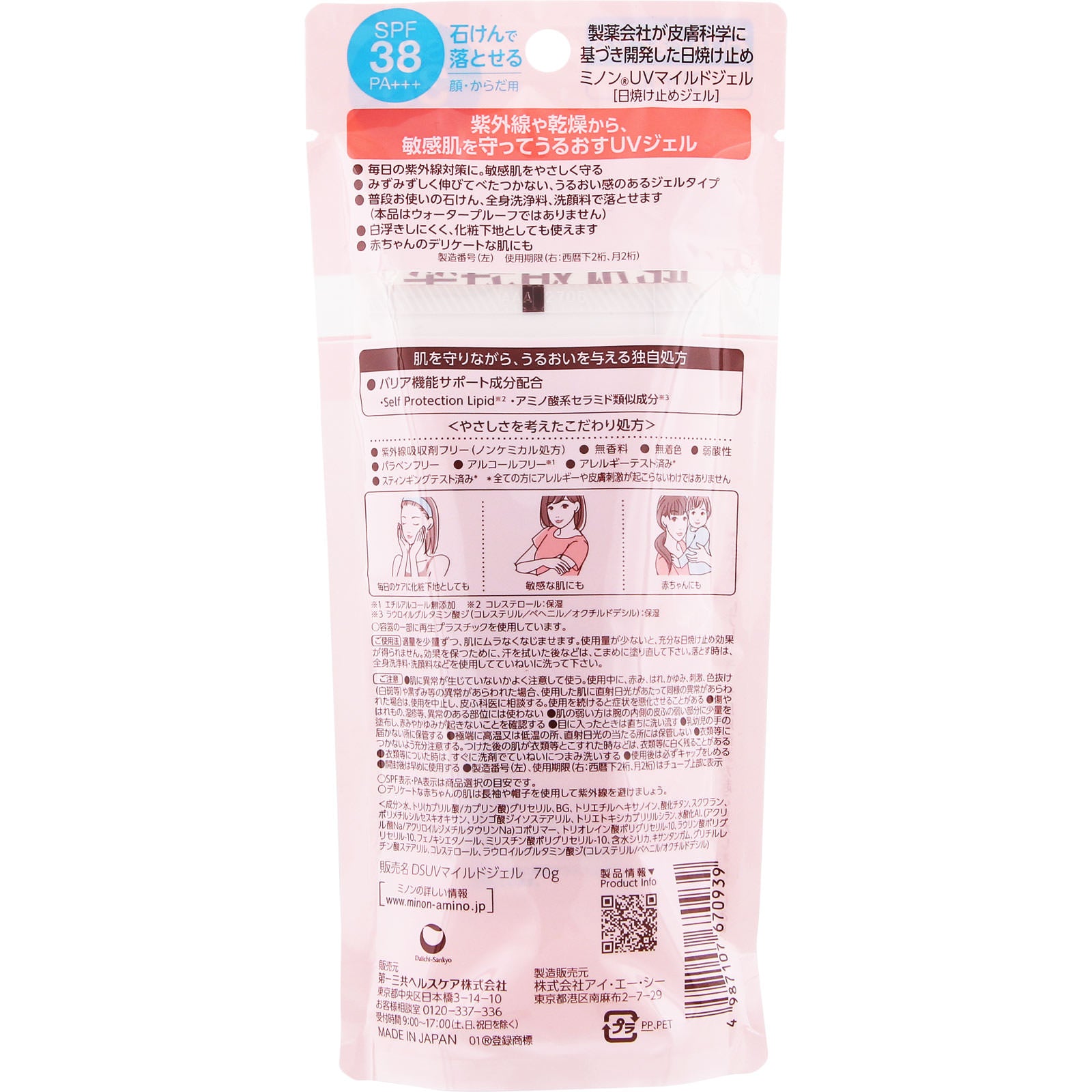 DAIICHI SANKYO MINON Sensitive Skin Mild Sunscreen Gel SPF38/PA+++ 70g 日本MINON 温和敏感肌防晒凝露 SPF38/PA+++